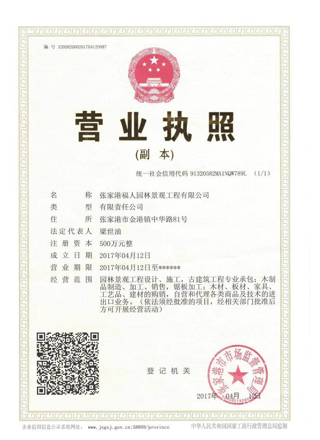 張家港福人園林景觀工程有限公司是一家積數年木業選材經驗,深諳木性,因材加工,讓天然的木質孕育出綠色的精品。為了市場與構建成現代園林都市的需求,本公司專門成立了一支專家團隊,從事園林景觀、古建寺廟、木結構設計安裝等,(主要經營產品:菠蘿格、巴勞木、山樟木、柳桉木、銀口、第倫桃、紅鐵木、非洲紅花梨、深度炭化木、表面炭化木、美國南方松、花旗松等木材防腐處理及零售與批發。)